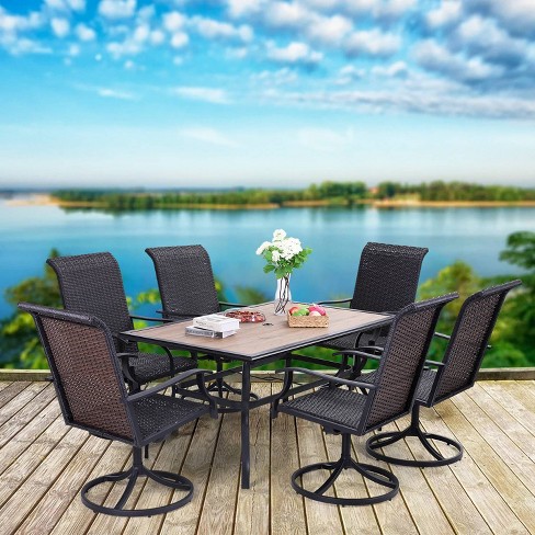 People usually end up spending an extra $400 for a set of 8 waterproof fabric outdoor seat cushions. White patio dining benches are sleek picks, while black outdoor dining benches have a modern edge. The best outdoor patio dining sets, including bistro sets and picnic. 40 w x 40 l x 27.5 h; Patio dining set with bench is a must have item for a house that requires enjoyments at any time.